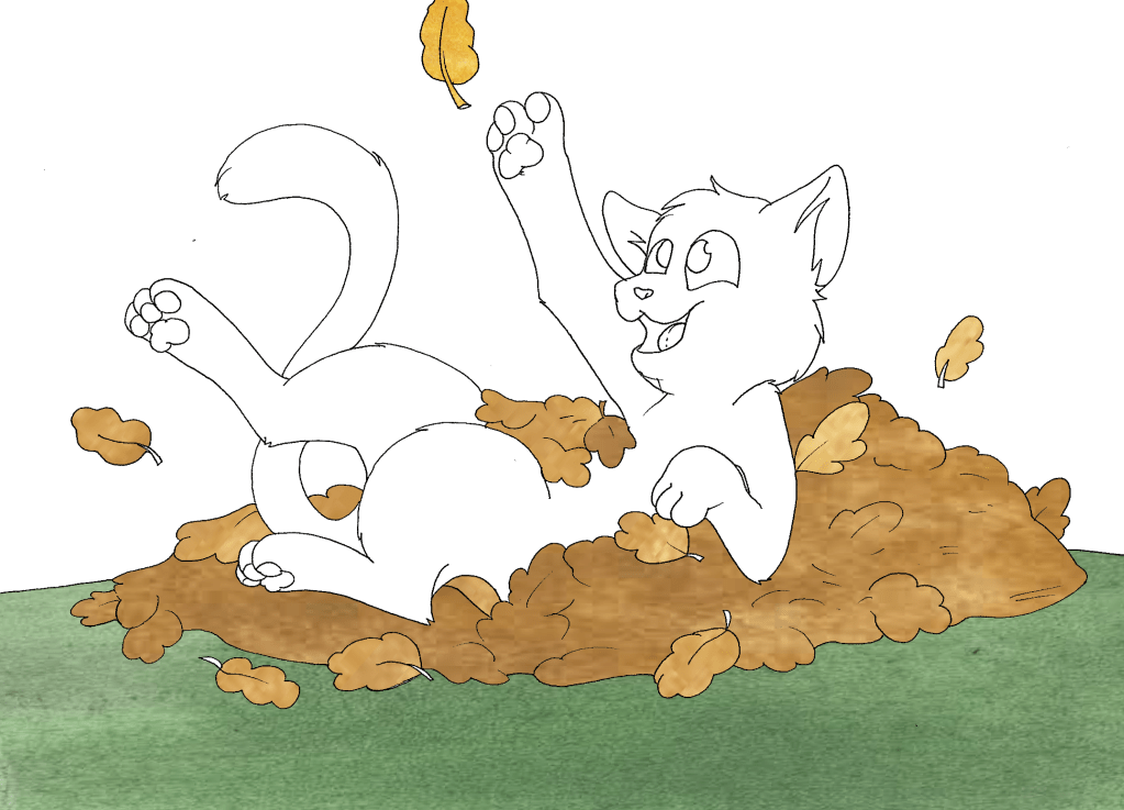 For my first texture trial I focused on the leaves, I didn’t want to use the texture the same way so I rotated it and modified the contrast and brightness for some. I wanted the leaf on top to pop out more so the focus is more on Slinky playing with the leaves and not the leaves in the background. I’m planning on adding a tree to the background so it’s a bit more like the original.